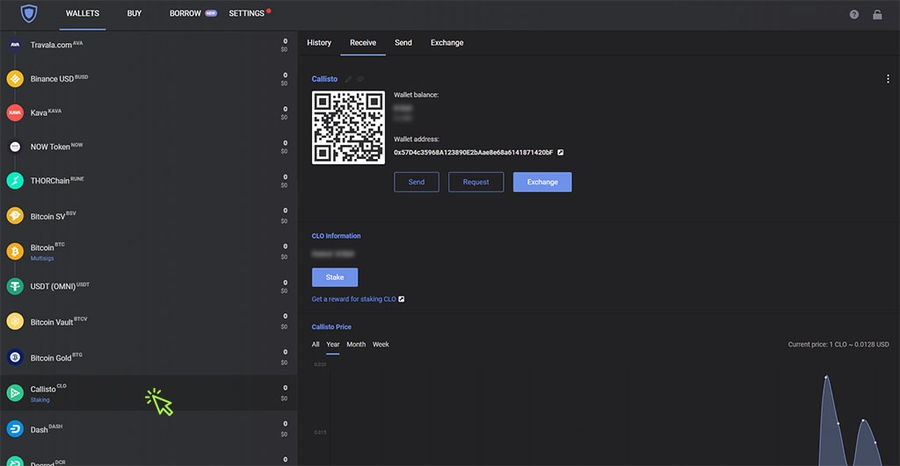 1. Open Guarda Desktop, and then select your Callisto wallet in the main menu.